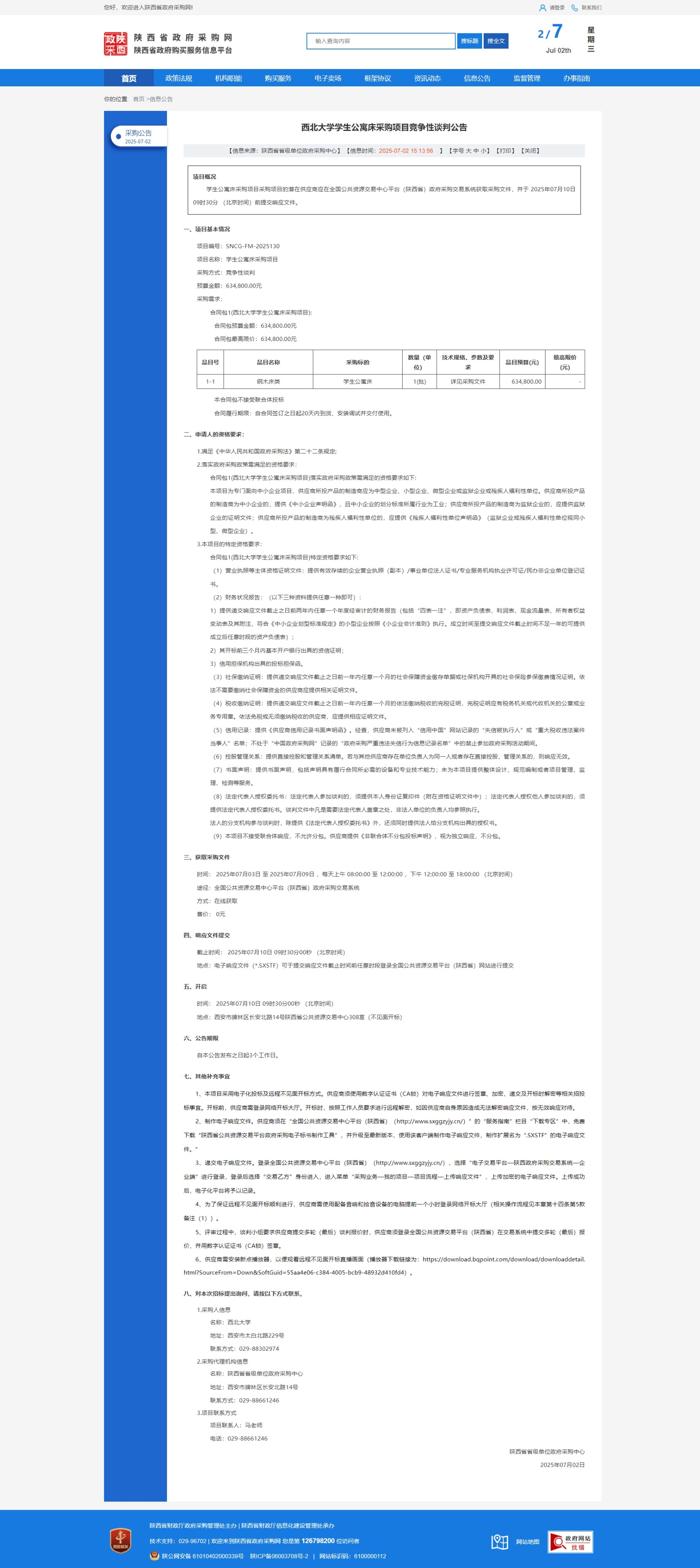 原公告链接:https://www.ccgp-shaanxi.gov.cn/freecms/site/shaanxi/ggxx/info/2025/8a69c67497a9ff030197c8e900a9510c.html?noticeType=001013&noticeId=1bd2af55-5716-11f0-8063-08c0eb20c666