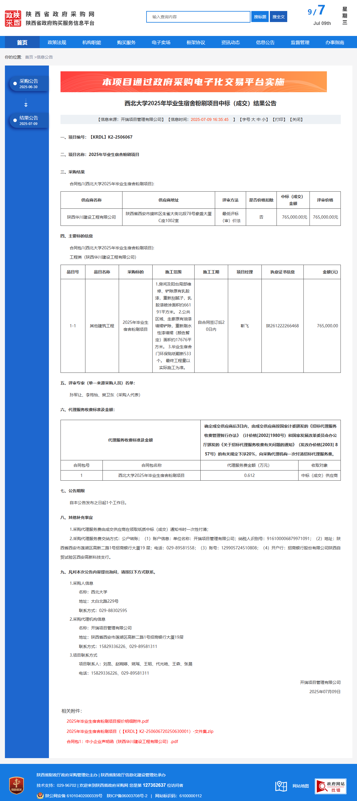 西北大学2025年毕业生宿舍粉刷项目中标(成交)结果公告
