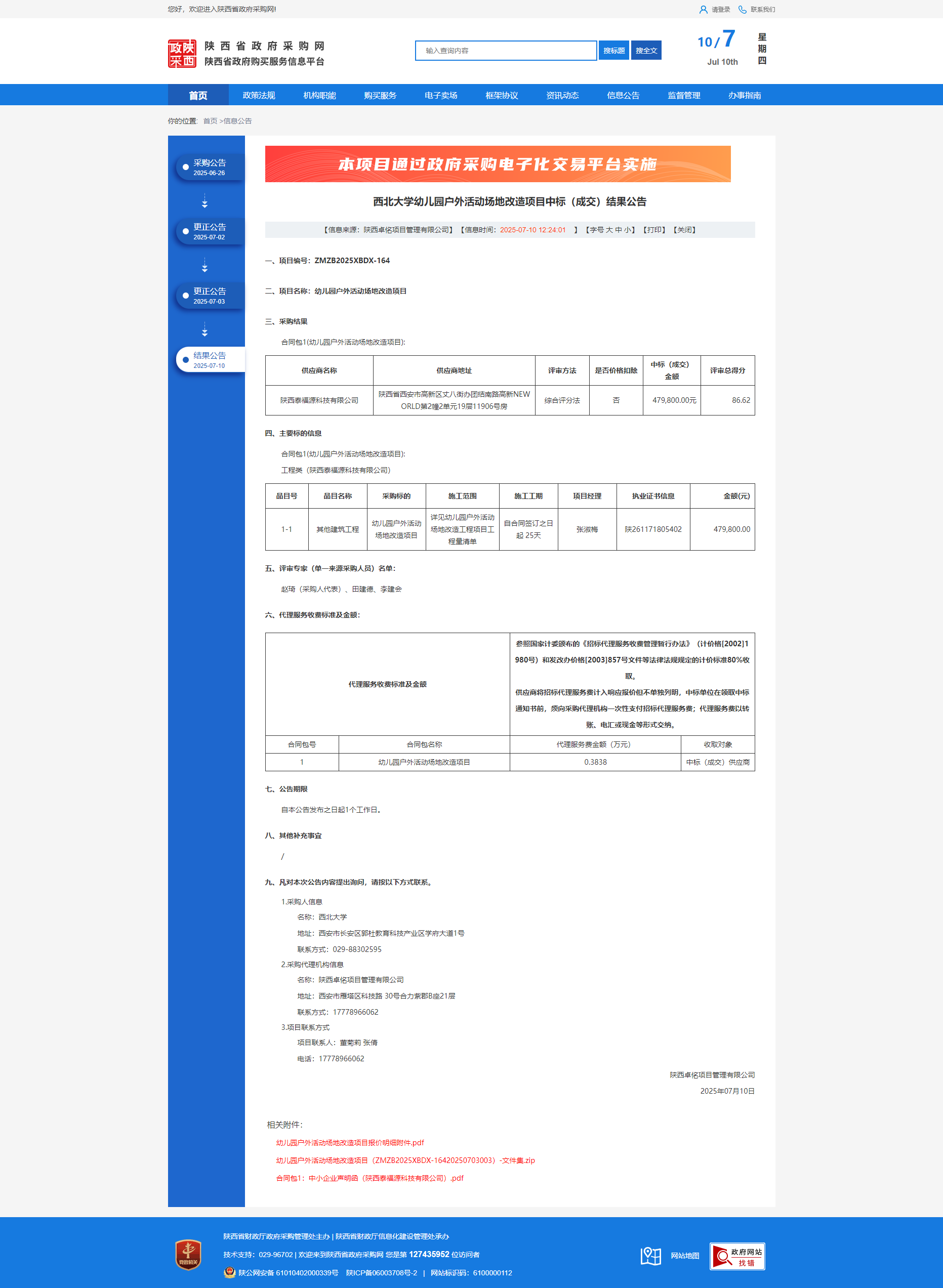 西北大学幼儿园户外活动场地改造项目中标(成交)结果公告