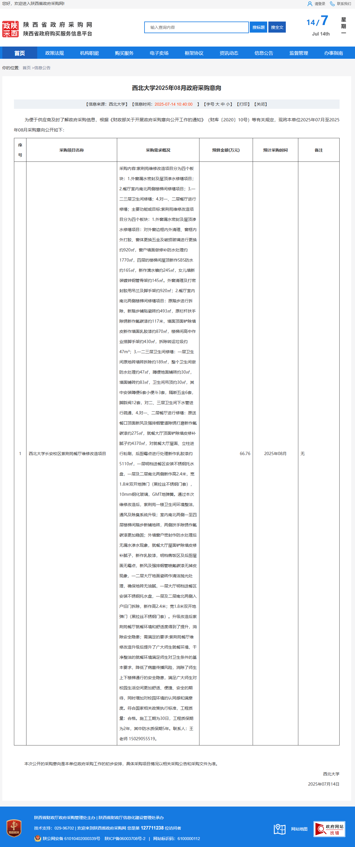 西北大学2025年08月政府采购意向