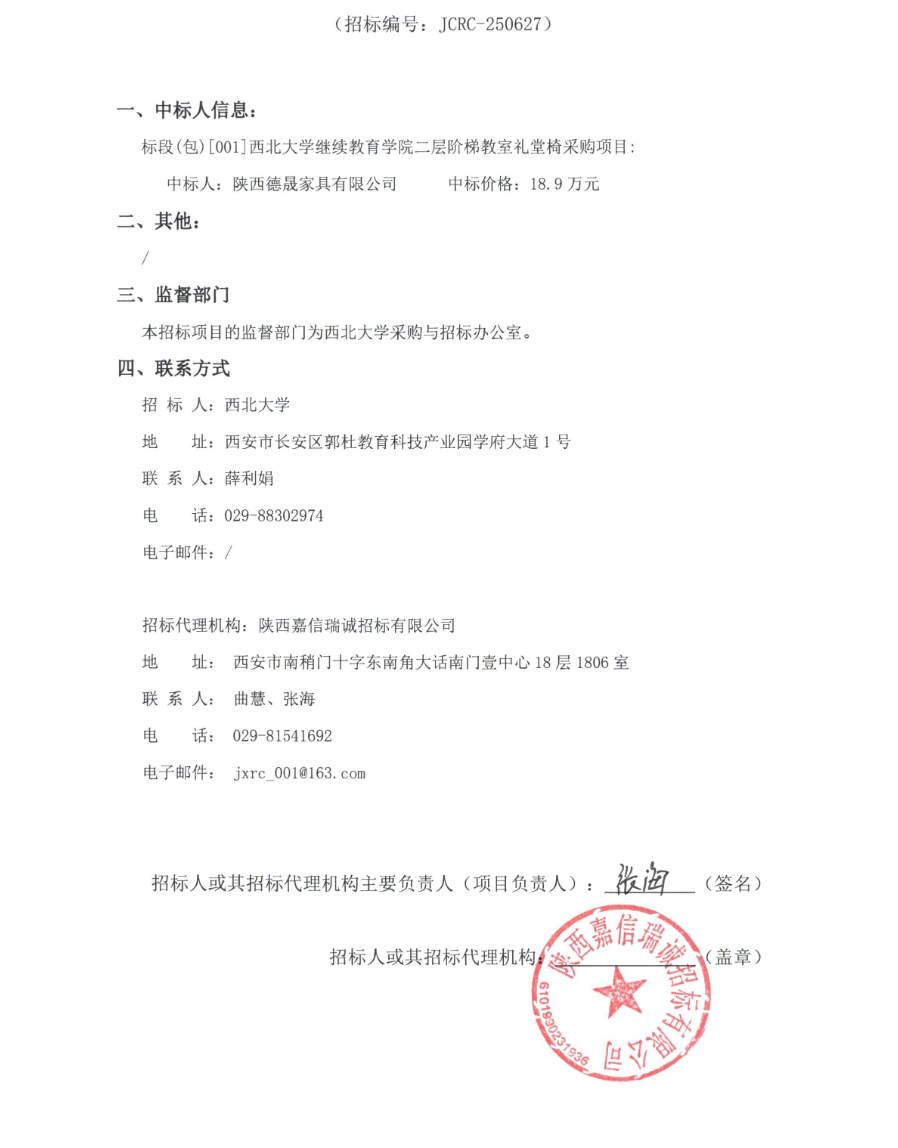 西北大学学生公寓床采购项目中标(成交)结果公告
