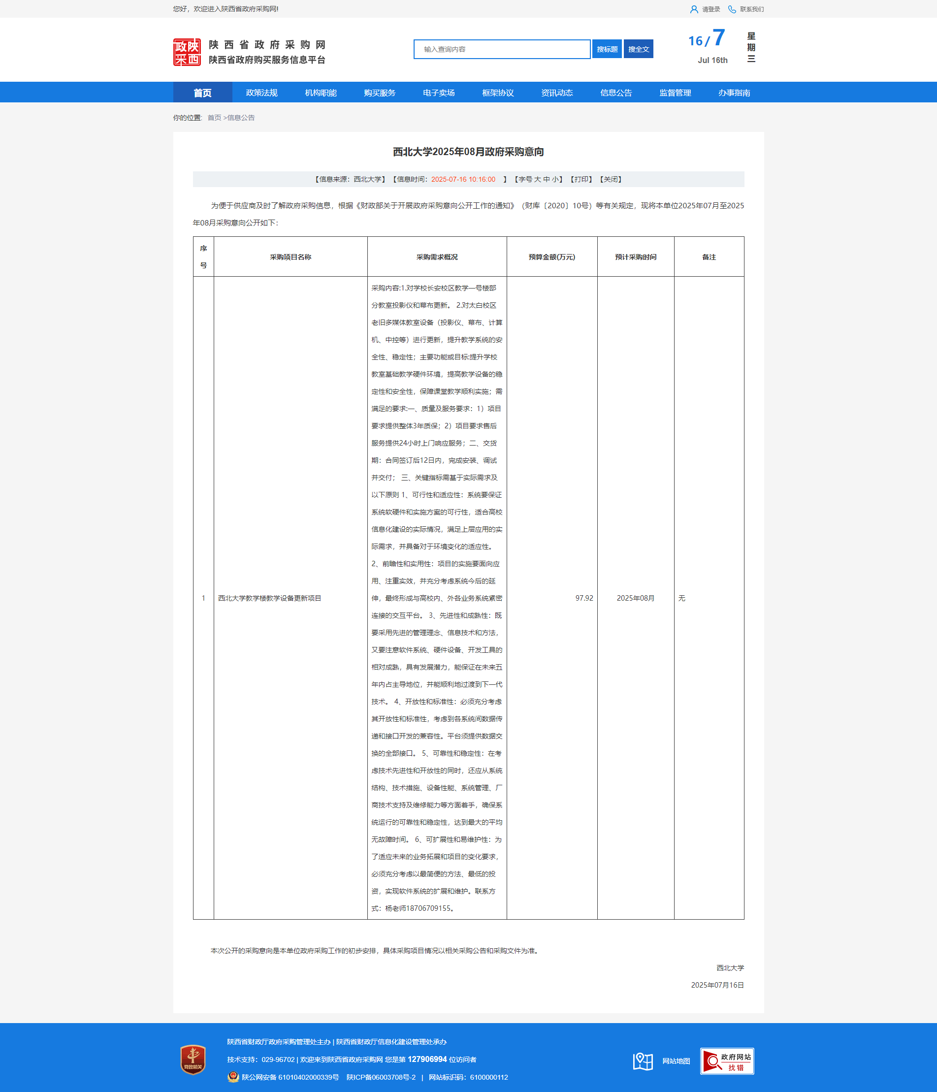 西北大学经济管理学院9804班智慧教室装修项目(XDJJ-GC-202507001)竞价采购公告