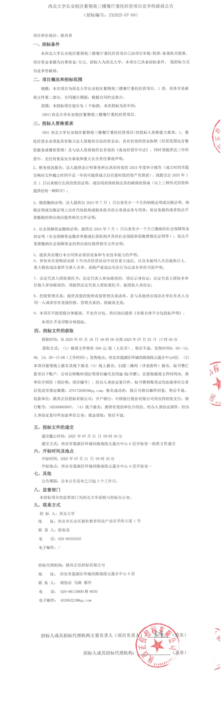 西北大学长安校区紫荆苑三楼餐厅委托经营项目竞争性磋商公告