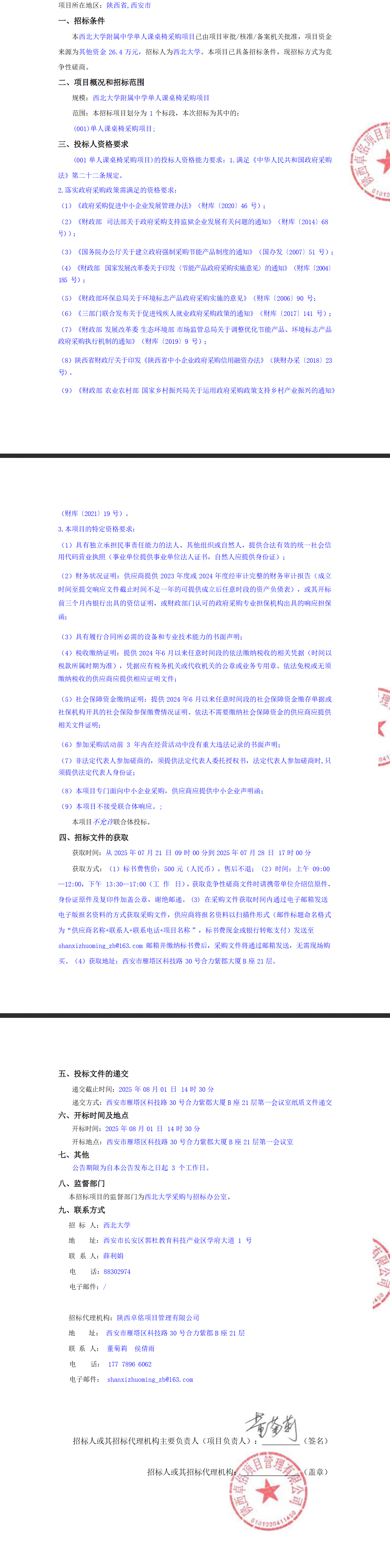 西北大学附属中学单人课桌椅采购项目竞争性磋商公告