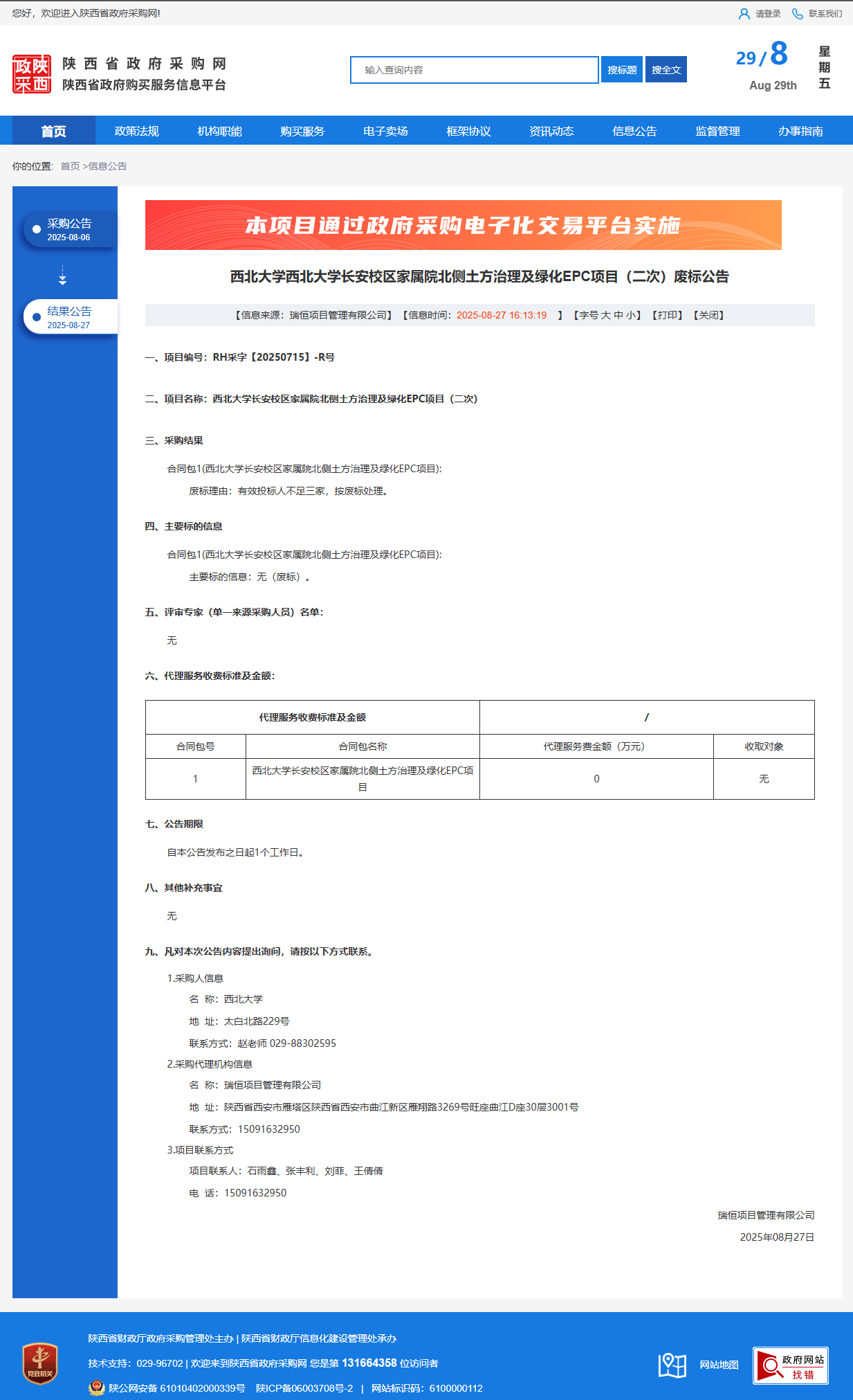 西北大学化工学院科研测试平台装修改造采购项目(XDJJ-GC-202508003)竞价结果公告