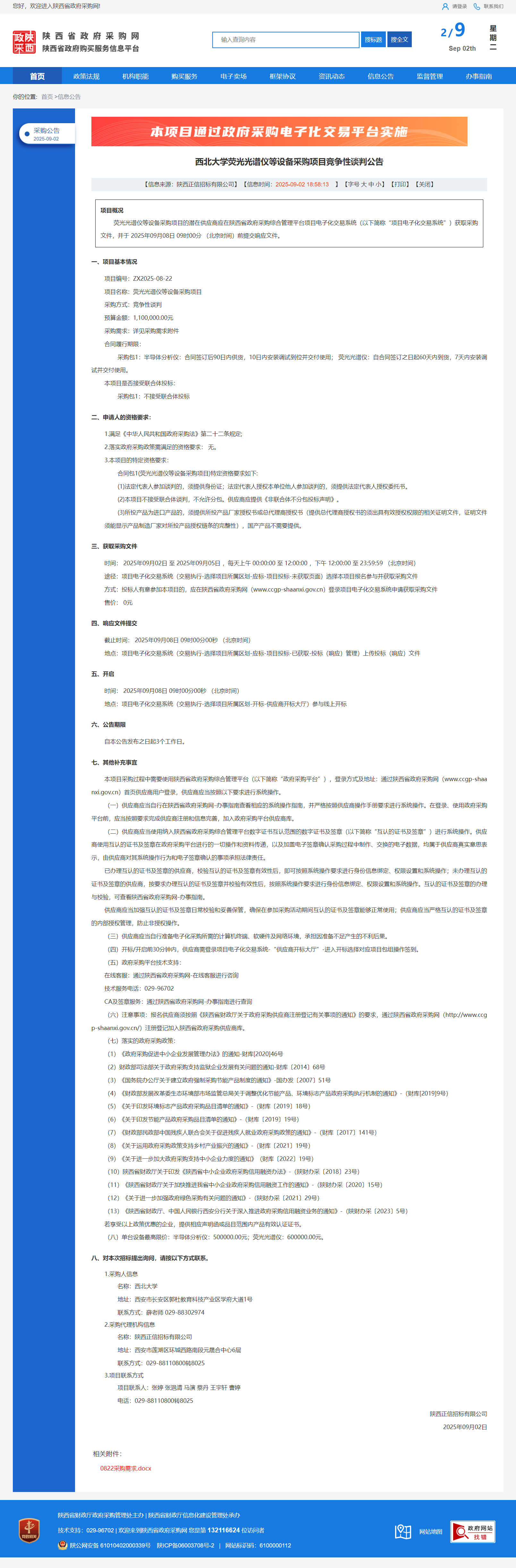 西北大学荧光光谱仪等设备采购项目竞争性谈判公告