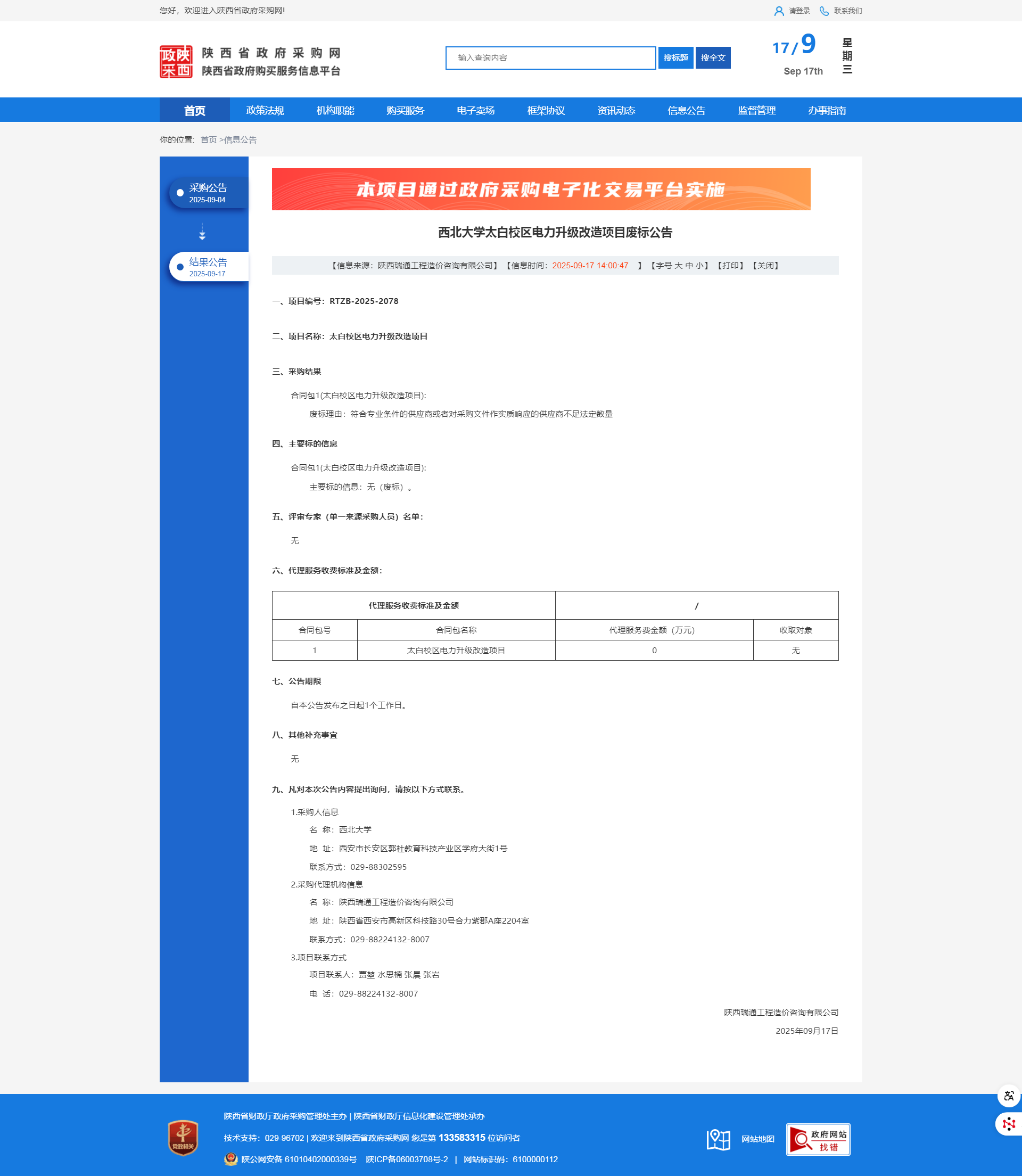西北大学太白校区电力升级改造项目(二次)竞争性磋商公告