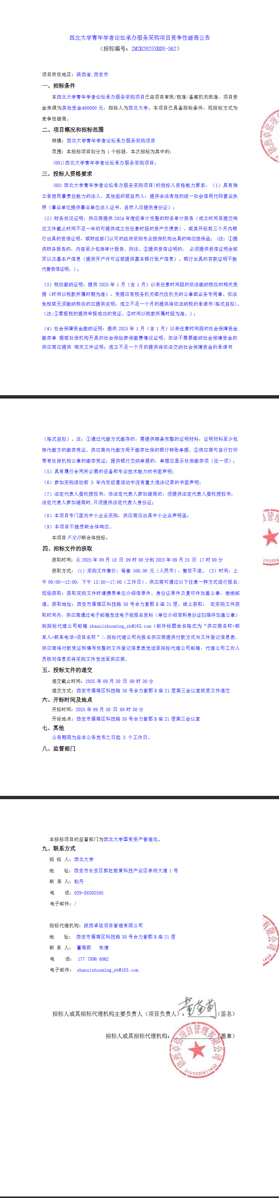 西北大学青年学者论坛承办服务采购项目竞争性磋商公告
