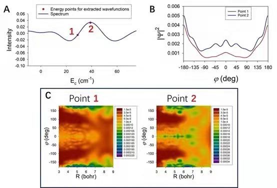 针对这一非常新颖和特殊的实验现象,理论方面谢长建结合准经典轨迹和量子动力学方法展开了研究。从经典轨线中分析“漫游”反应动力学特征,并通过量子波包动力学计算证实了反应的量子特性,阐释了实验上所观测到的“漫游”机理增强是由轨道共振引起量子效应现象。