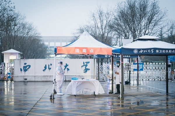 在西安市疫情防控形势严峻状况下,西北大学向全校各基层党组织和全体党员发出倡议。由普通教师、教辅人员、管理干部、工勤人员以及省、市直机关下沉一线的党员干部组成的120名教工党员志愿服务队和1500余名学生党员为骨干的青年志愿服务队,活跃在核酸检测、物资配送、信息统计、人员管理等各个环节。