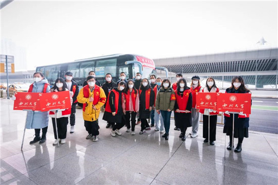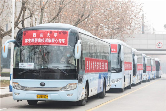 西北大学迅速调度多辆校车,组织党员志愿者分批分车护送他们到达西安北站、火车站、西安南站。