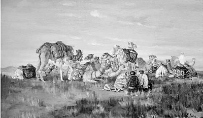 当前,哈萨克斯坦形成了以丝绸之路为主题创作的画家群体。丝绸之路是古代社会族群、宗教、文化、习俗等交流之路,哈萨克大草原是丝绸之路的核心区域,保留了辉煌灿烂的建筑遗迹、文化遗产、历史传说。哈萨克斯坦的历史文化与丝绸之路历史文化交织在一起,丝绸之路是艺术家创作的源泉。