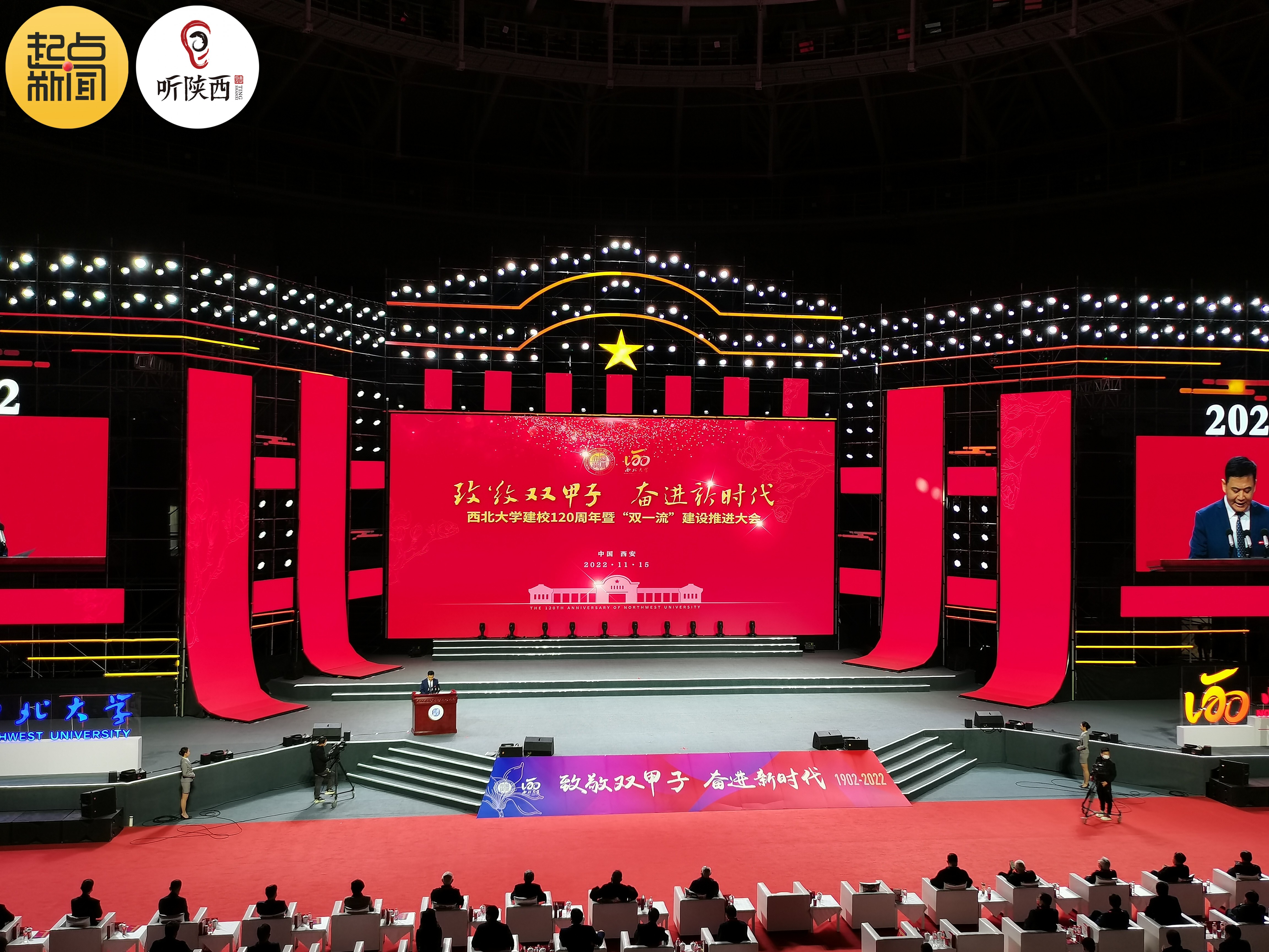 “致敬双甲子 奋进新时代”西北大学建校120周年暨“双一流”建设推进大会今天(11月15日)上午在西北大学长安校区举行。