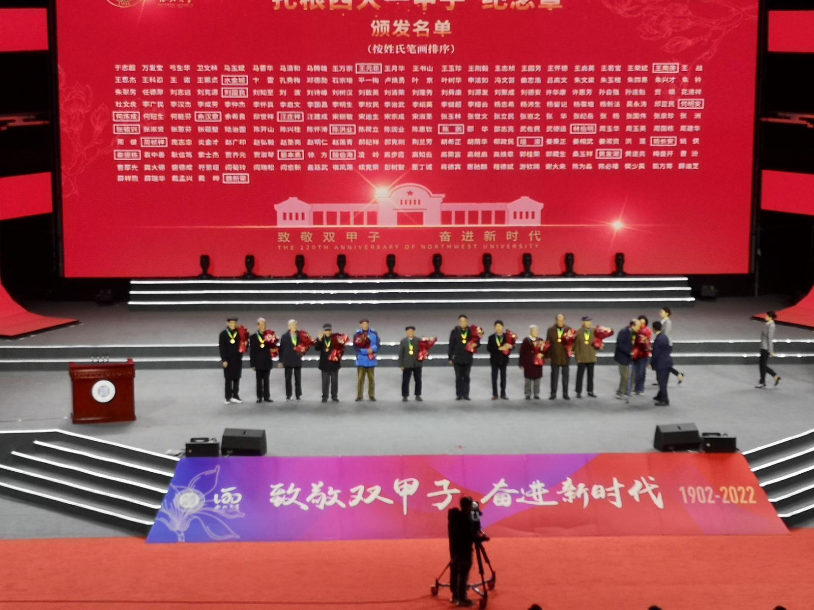 11月15日上午,西北大学建校120周年暨“双一流”建设推进大会在该校长安校区体育馆举行。众多西大学子及校友在线观看盛典,当几位白发苍苍的老教师缓步登台,接受学校党委书记王亚杰为他们颁发的“扎根西大一甲子”纪念章与鲜花时,顿时线上线下的嘉宾校友学生们为老教师老职工报以热烈的掌声。