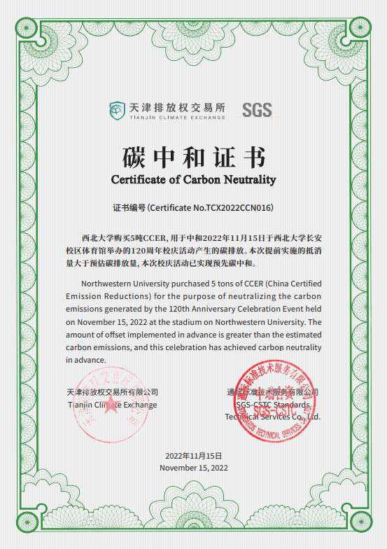 值得一提的是,此次大会所产生的碳排放已通过注销国家核证自愿减排量(CCER)的形式进行中和,西北大学也因此成为国内首个实现校庆活动碳中和的高校。