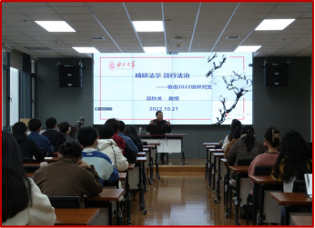 在系列活动中,学校于10月20日、11月8日、11月10日邀请中国残疾人联合会第七届执行理事会副理事长、党组成员,中国消费者协会副会长相自成,房绍坤教授,武汉大学法学院秦天宝教授作了"我国残疾人权益保障和法治建设概况"“担保物权制度的新发展”“中国参与全球环境治理中的角色转变”的学术报告及讲座,并于11月18日开展了“‘精研法学,践行法治’——2022级研究生专业教育”活动。10月31日至11月8日,西北大学开展了20场“精研法学,践行法治”法律专题学术汇报。