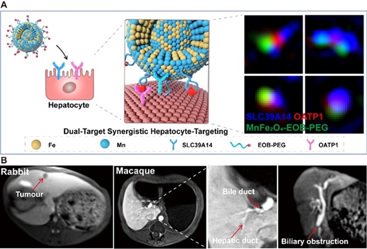 肝细胞特异性MnFe2O4-EOB-PEG纳米对比剂设计、开发及磁共振肝胆成像。(樊海明课题组 供图)