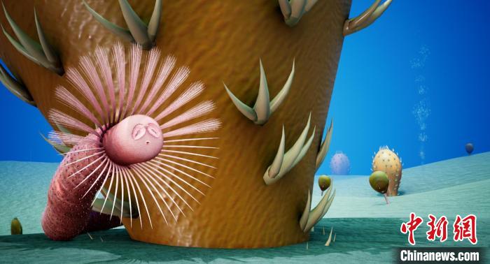 寒武纪澄江拟管虫的模拟复原图。