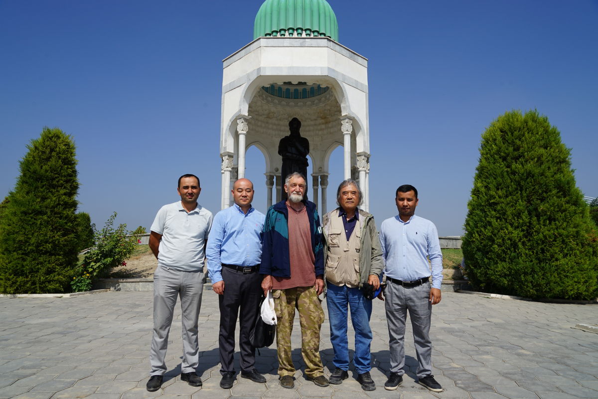 2022年8月,西北大学丝绸之路考古合作研究中心访乌团与乌文化遗产署第一副署长图尔苏纳利·库齐耶夫先生(左三)合影留念。