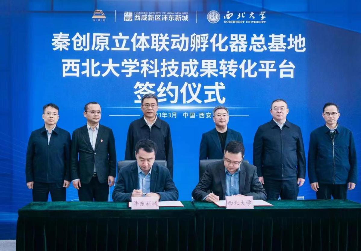 3月3日上午,西北大学科技成果转化平台签约仪式在西咸新区沣东新城秦创原立体联动孵化器总基地举行。西咸新区党工委委员、沣东新城党委书记、管委会主任姚海军,西咸新区科技创新和新经济局局长王斌,沣东新城党委委员、管委会副主任蒋波,西北大学校长郭立宏,校党委常委、副校长常江,西咸新区秦创原创新促进中心相关负责人及学校相关单位负责人、教师代表出席仪式。