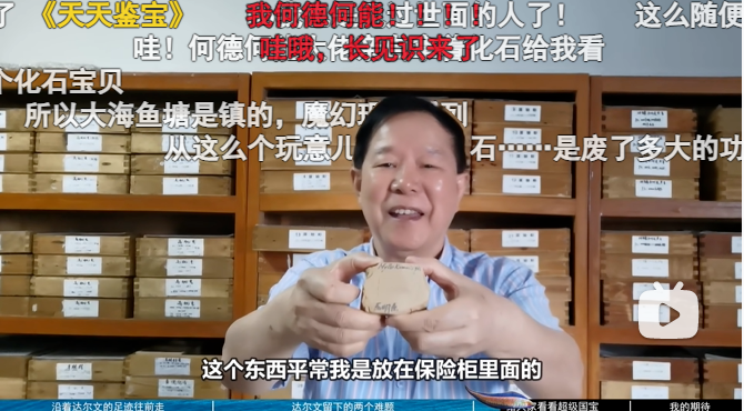 2022年6月,舒德干院士入驻B站开讲“我们从哪里来”。他用一口湖北“塑普”简单介绍了下自己的研究方向后,便随手拿出了被称为“天下第一鱼”的昆明鱼化石,向观众讲解生物进化,并幽默地补充道:“这个东西是超级国宝,平常我都是锁在保险柜里的!”引来网友在弹幕中惊呼“太珍贵了”“来学知识还能免费看国宝”。