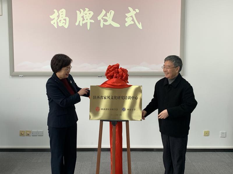 在当天的揭牌仪式上,省妇联副主席林海君、西北大学党委副书记张清签署陕西省家风文化研究培训中心合作协议,省妇联主席王玉娥与西北大学校长郭立宏共同为陕西省家风文化研究培训中心揭牌,并为陕西省家风文化研究培训中心首批受聘专家颁发聘书。