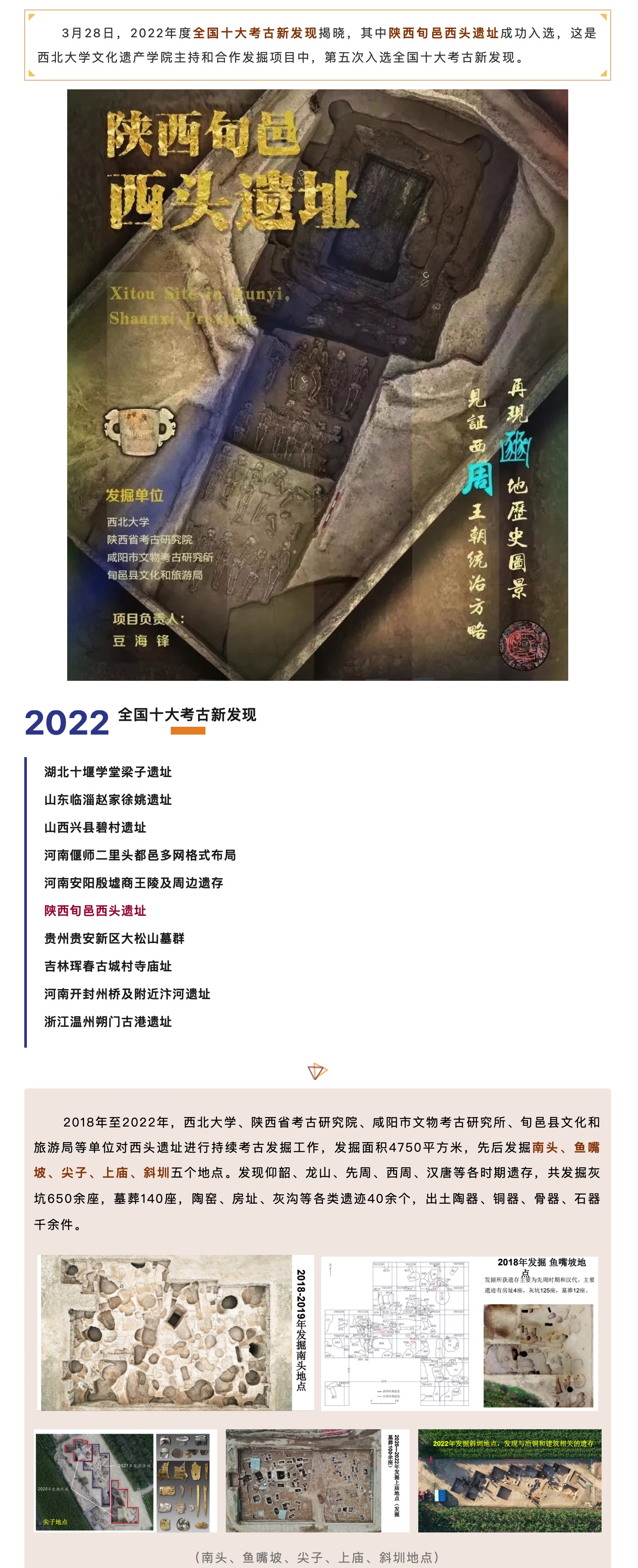 刚刚揭晓!西北大学主持发掘项目,入选2022年度全国十大考古新发现! 作者: 编辑:张邓斓 时间:2023-03-28 原文链接:https://www.cingta.com/article/detail/24207