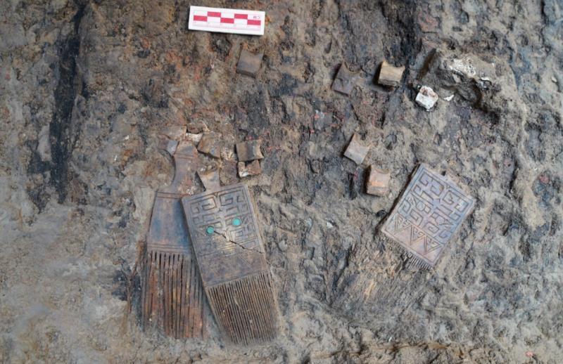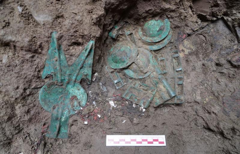 2022年发掘的斜圳地点位于城址内东北部,发现有冶炼残炉、铜矿石、炼渣和炉壁残块等冶铜遗存;并发现较大面积夯土建筑基址、大量废弃陶瓦残片和刻文陶器,从出土遗物可判断,该地点冶铜和建筑基址的年代集中在西周早中期。