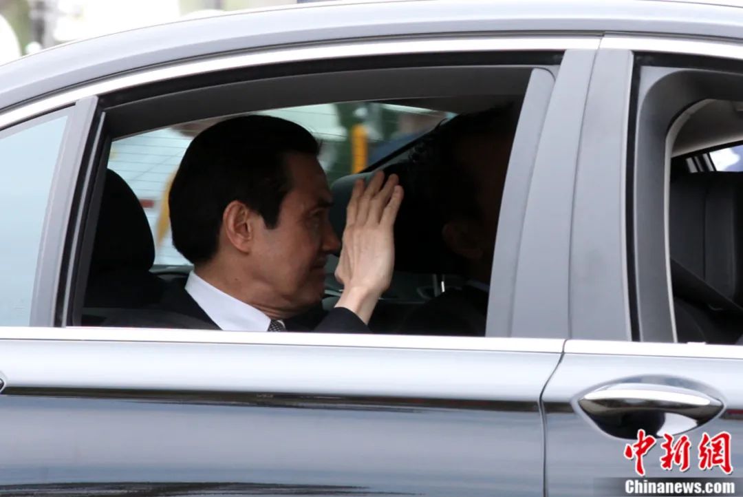2013年4月3日,台湾当局领导人马英九在台北遥祭黄帝陵。图为马英九驱车离开时,向人群挥手致意。董会峰 摄