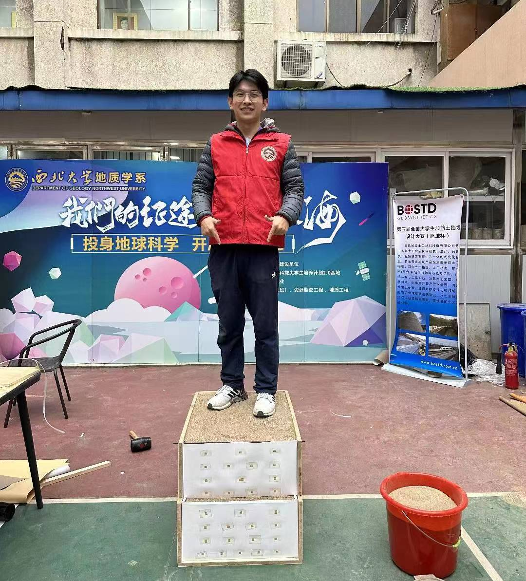 回想起与高炫宇一起参与加筋土挡墙设计大赛的经历,张嘉豪说:“在比赛的准备过程中,我们在课余时间都泡在实验室的‘黄土’里,试着不断加固挡墙,增强承重能力。”