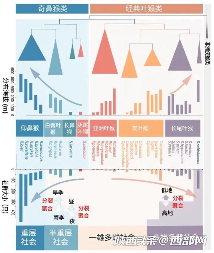 论文的共同第一作者、西北大学生命科学学院教授齐晓光说,为了做好研究,研究团队与国内外高校、研究院所、动物园等多个团队合作,分析调查了亚洲叶猴2903个栖息地,对每个栖息地提取的19个环境变量的综合生态因子进行分析,构建了迄今为止最全的亚洲生态数据集。同时,团队开创性地建立了“行为-生态-基因组”这一全新的研究范式,完成了亚洲叶猴七个属代表物种的高质量全基因组测序,得到了全球首个染色体级别的非人灵长类基因组,从而构建精确的系统发育关系。