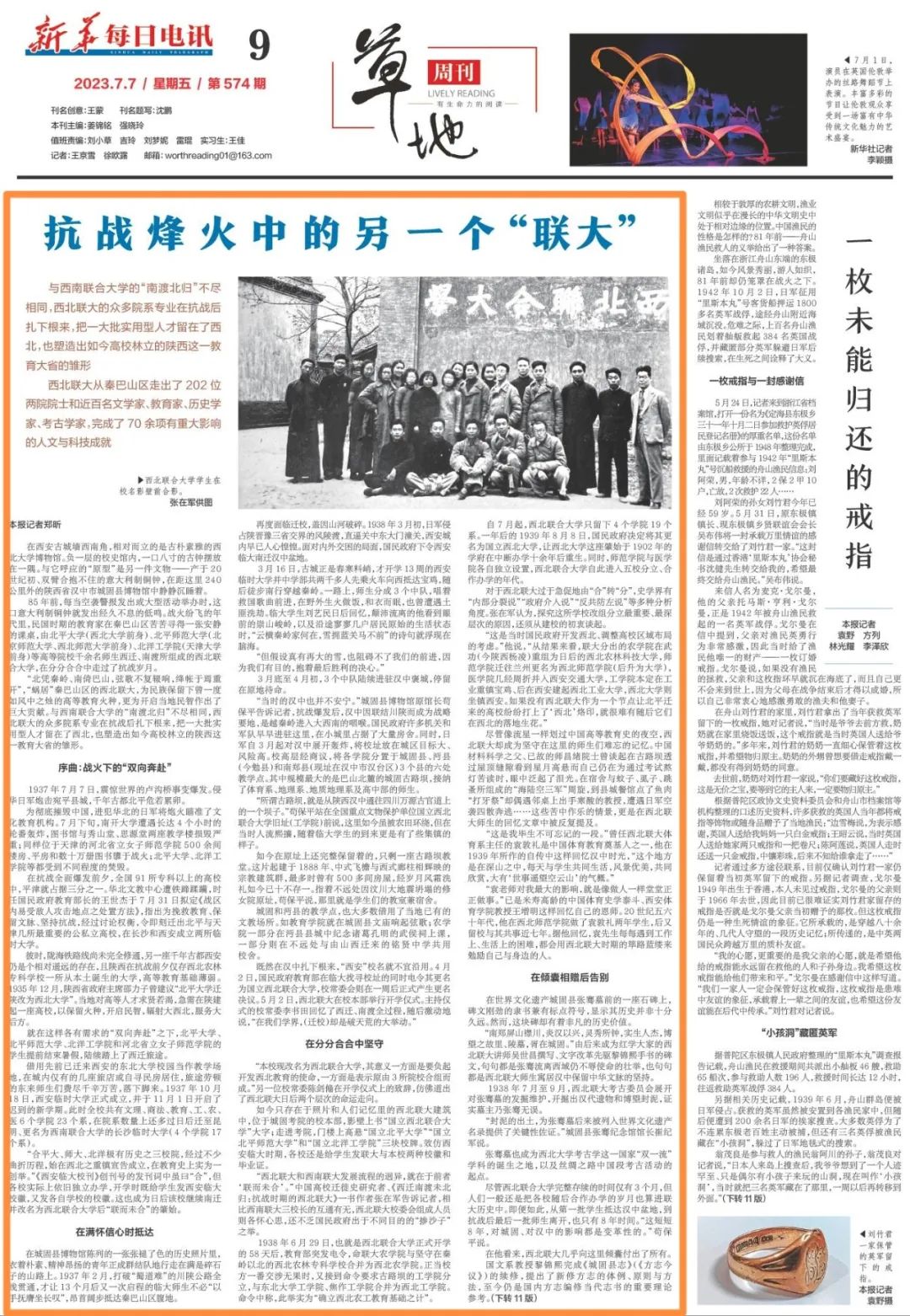 在拥有99年历史的城固县第一中学,有一座满园桂树伸向二层回廊的漂亮小院。利用课间,校党办主任、高三语文老师杨启明在小院中,向几名学生讲述80多年前黎锦熙、许寿裳、罗章龙等名师在此克服困难,坚持授课的故事,为即将迎来高考的同学加油鼓劲。“我们在协助保护这座校内文物的同时,也尽可能使其‘活化’利用,丰富校园文教生活。”杨启明说,他也是西北联合大学法商学院旧址的文保员,“学校利用开学第一课、主题党日等活动,组织师生走进旧址,感知西北联大历史,厚植爱国主义沃土。”位于县城中心的联大旧址——城固文庙大成殿安静肃穆,与几米外一座幼儿园的嬉闹相映成趣。“在西北联大的带动和引领下,城固成为抗战时期全国三大文教中心之一。当时县内共有8所中学,在陕西各县独占鳌头。城固的首位大学生,也是联大时期培养的。”崔纪军说,“尽管西北联大留存于世的史料和遗迹远远算不上丰富,但影响却是深植人心的。”在陕西理工大学图书馆的西北联大汉中办学纪念馆里,该校教育科学学院副教授陈海儒正端详一张西北联大时期的毕业证。发起布展已历十年,他与校内专家不断挖掘、抢救出新的史料,如今正致力于完成口述西北联大历史的项目。“我是在云南师范大学上学时,因为接触母校对西南联大历史的挖掘过程,而对西北联大历史产生兴趣的。”他说,西北联大因其短暂的办学史,并不为大多数人所知,应该用更大力度、更多元的形式挖掘并呈现这段尘封的历史。2019年10月,位于城固县的三处西北联合大学旧址被列入第八批全国重点文物保护单位名单;2020年9月,旧址入选第三批国家级抗战纪念设施、遗址名录,为相关建筑物带来了更妥善的修复与维护。同时,北京师范大学、天津大学、西北工业大学、西北大学等对各自校内老专家、老干部及其后辈的访谈,加上定期举办的学术交流,使得新的研究成果正不断涌现。“西北联合大学写下了中国高等教育史的光辉一页。它虽办学时间短暂,但基本完成了这一区域未来几十年高等教育版图的擘画,在汉中、陕西乃至全国都留下了深远的影响。”汉中市委常委、宣传部部长屈占权表示,汉中将在继续做好文物保护与史料收集的同时,进一步与相关单位协同,充分挖掘西北联大背后的红色革命精神和爱国主义文化内核,让西北联大的办学精神和理念薪火相传、生命永续。