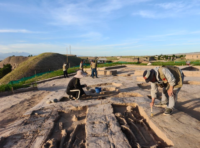 契纳尔特佩遗址由中国-乌兹别克斯坦联合考古队于2019年发现。今年4月2日至6月8日,两国考古工作者对这里进行了首次联合考古发掘,确定该遗址分布在契纳尔村东侧台地的边缘地带,分布面积约2.5万平方米。