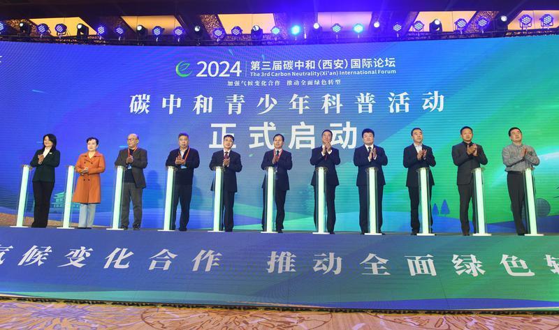 论坛开幕式上,“低碳行动·少年有责”碳中和青少年科普系列活动正式启动。据悉,系列活动将通过科普宣讲进校园、青少年线上低碳知识竞赛等,鼓励青少年学习低碳环保知识,加深对低碳环保理念的理解,激励他们成为低碳生活的倡导者和实践者。主旨报告环节,中国科学院院士、北京大学副校长朴世龙,中国科学院院士、北京大学能源研究院院长金之钧,国家气候战略中心首席科学家徐华清等专家学者,围绕“碳中和与生态系统固碳”“从四个维度看碳中和目标的实现”“实施积极应对气候变化国家战略”等议题进行了深入报告。圆桌讨论环节,来自国内外高校及科研院所的专家学者和陕西氢能、长庆油田、隆基绿能、陕西秦龙等企业代表,围绕“新质生产力助推产业绿色低碳转型”“应对气候变化科技创新与人才培养国际合作”等议题进行讨论。