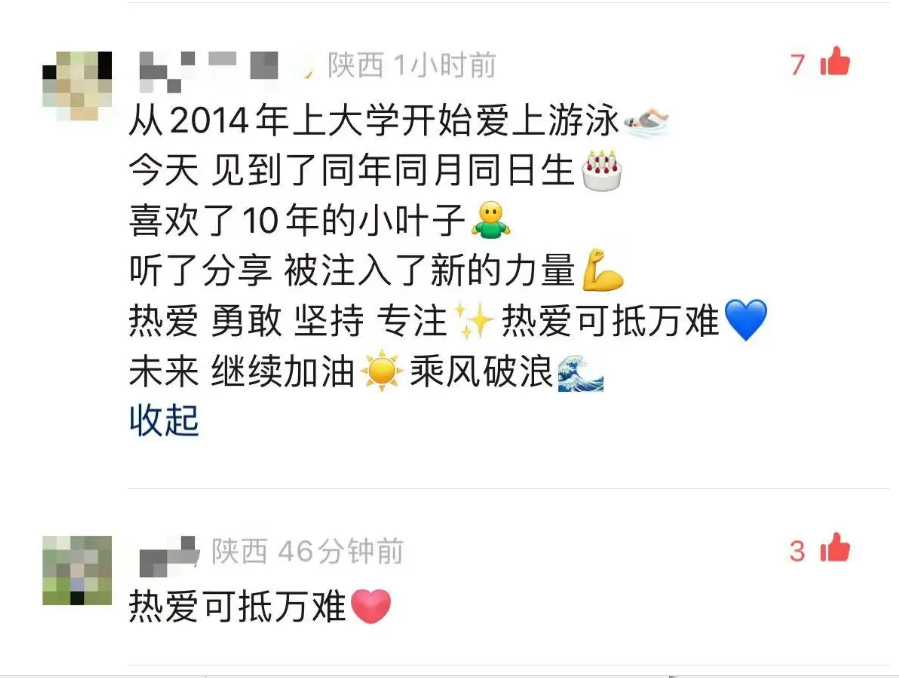 “热爱可抵万难”网友也纷纷在西北大学视频号以及叶诗文社交账号评论区点赞、祝福