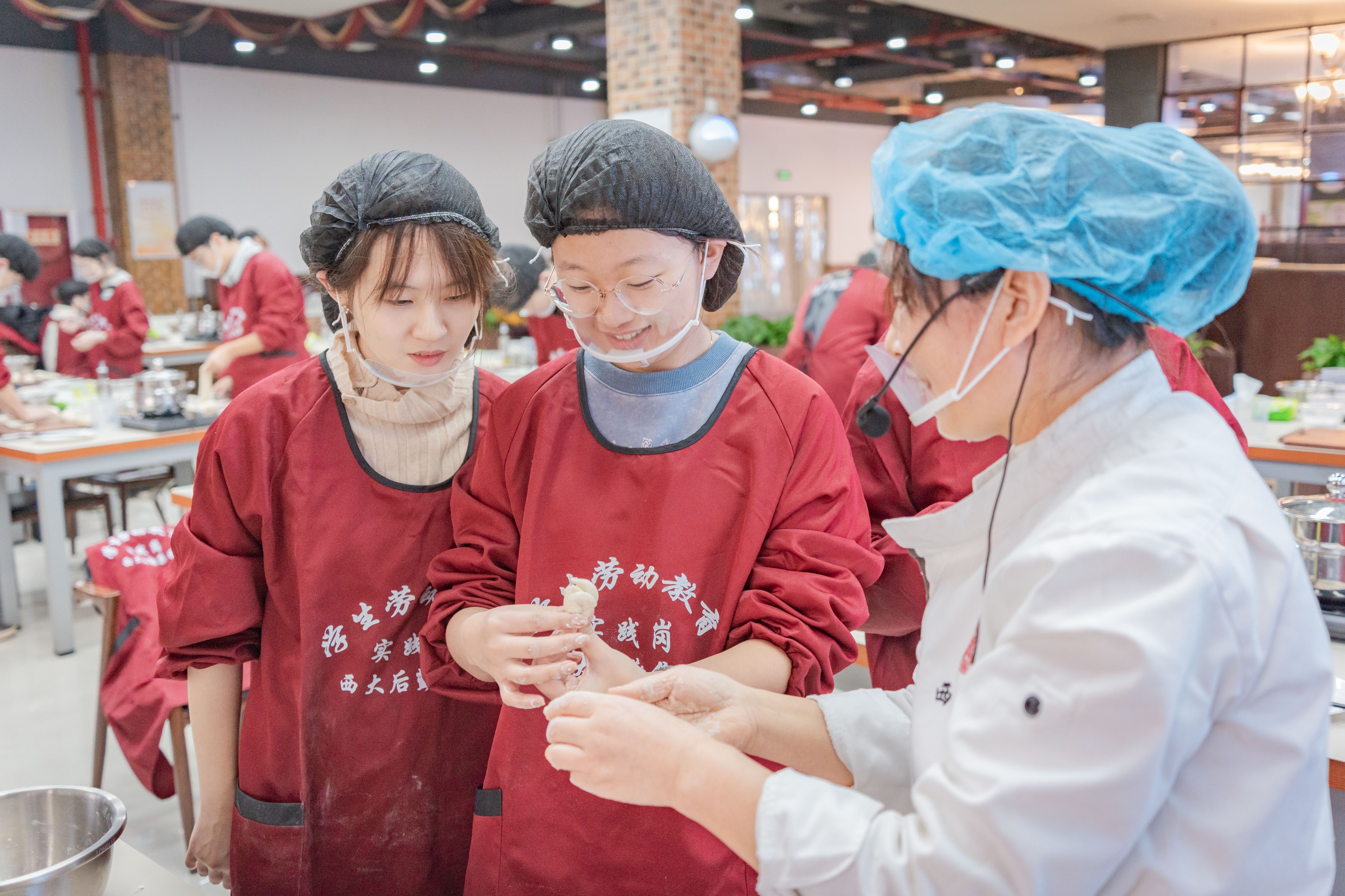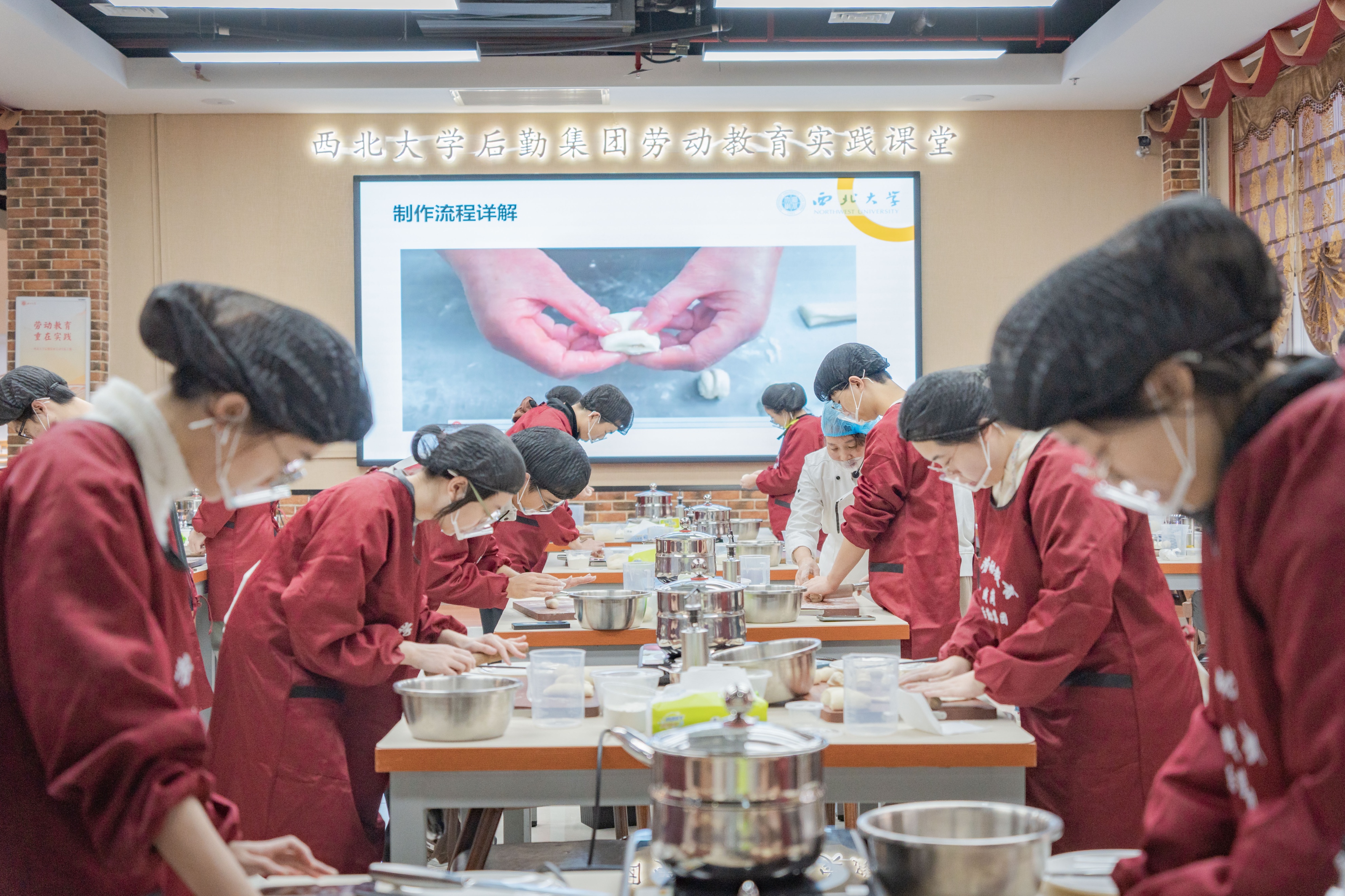 这样有趣的场景,每周三下午都会在西北大学玉兰苑三楼勤育园餐厅的劳动教育实践课堂上演。今年,面向电子信息科学与技术专业2023级本科生,西北大学首次为其开设烹饪专业选修课程。