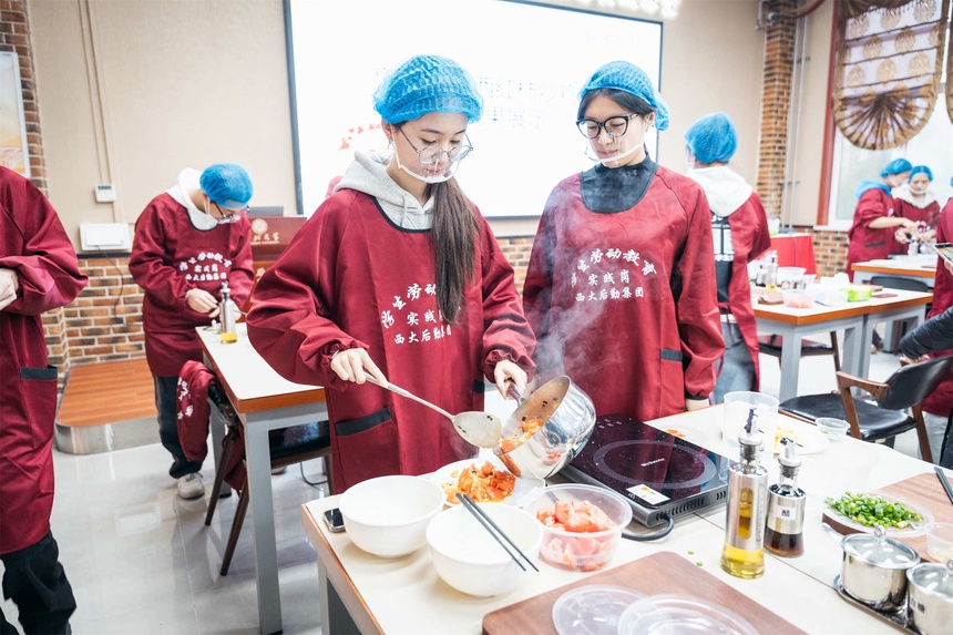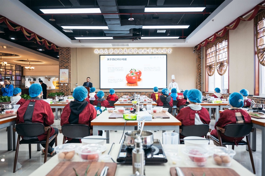 在繁忙的校园生活中,西北大学玉兰苑三楼勤育园餐厅的一角,每周三下午总会热闹非凡。电子信息科学与技术专业2023级本科生们在这里,不仅学习专业知识,更在烹饪课堂上体验劳动的乐趣,感受生活的温度。