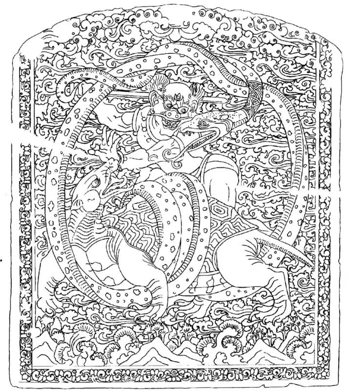 郑玉隆研究方向为汉唐考古与美术考古,他介绍,该图像源于两汉时期流行的玄武与仙人骑瑞兽图像。统治阶级出于平定叛乱、维护统治与镇压政敌的目的,使用神人御玄武图像作为葬具上的装饰。神人御玄武图像按照形态差异可分汉式武士和胡人力士两类,前者流行于北魏、北齐时期,是传统汉文化影响下的产物,后者流行于北周、隋代,更多受到佛教、祆教及外来文化的影响。