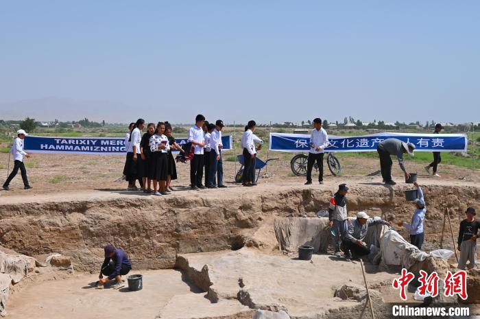 中新网西安5月23日电 (记者 阿琳娜)记者23日从西北大学获悉,中国-乌兹别克斯坦联合考古队近日在乌兹别克斯坦苏尔汉河州班迪汉2号遗址发掘现场举办了一场别开生面的公众考古活动——“遗址开放日”。来自当地的40余名中、小学生走进考古现场,在考古队员的带领下,走进千年古城,感受丝路文明的历史魅力。