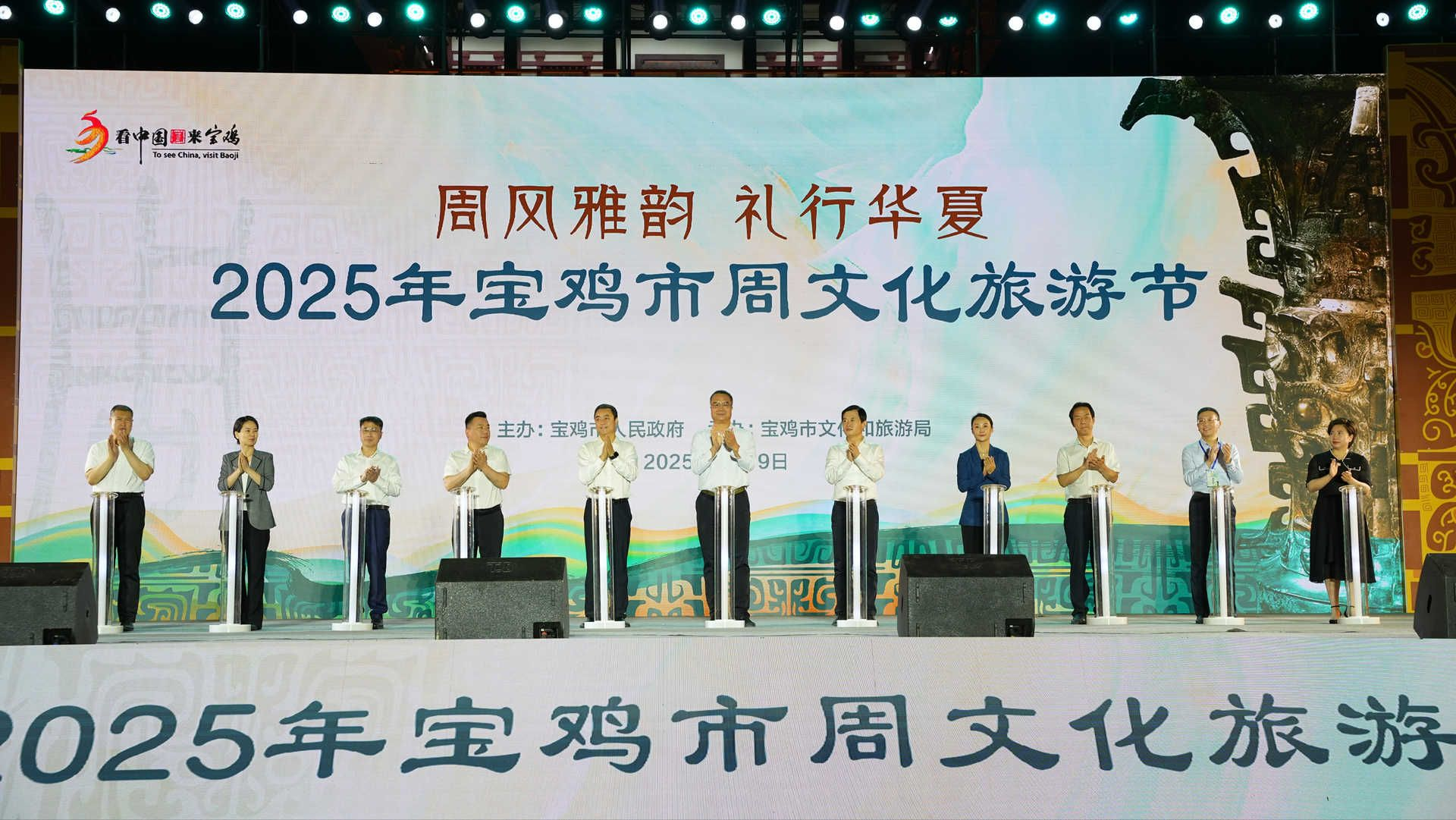 “周风浩荡起宝鸡,青铜铭史铸华章”。5月19日晚,2025年宝鸡市周文化旅游节在中华石鼓园开幕,诚邀八方宾朋相聚宝鸡开启一场精彩纷呈的周文化之旅。宝鸡市委书记杨广亭、市长王勇、市人大常委会主任景耀平参加开幕活动。