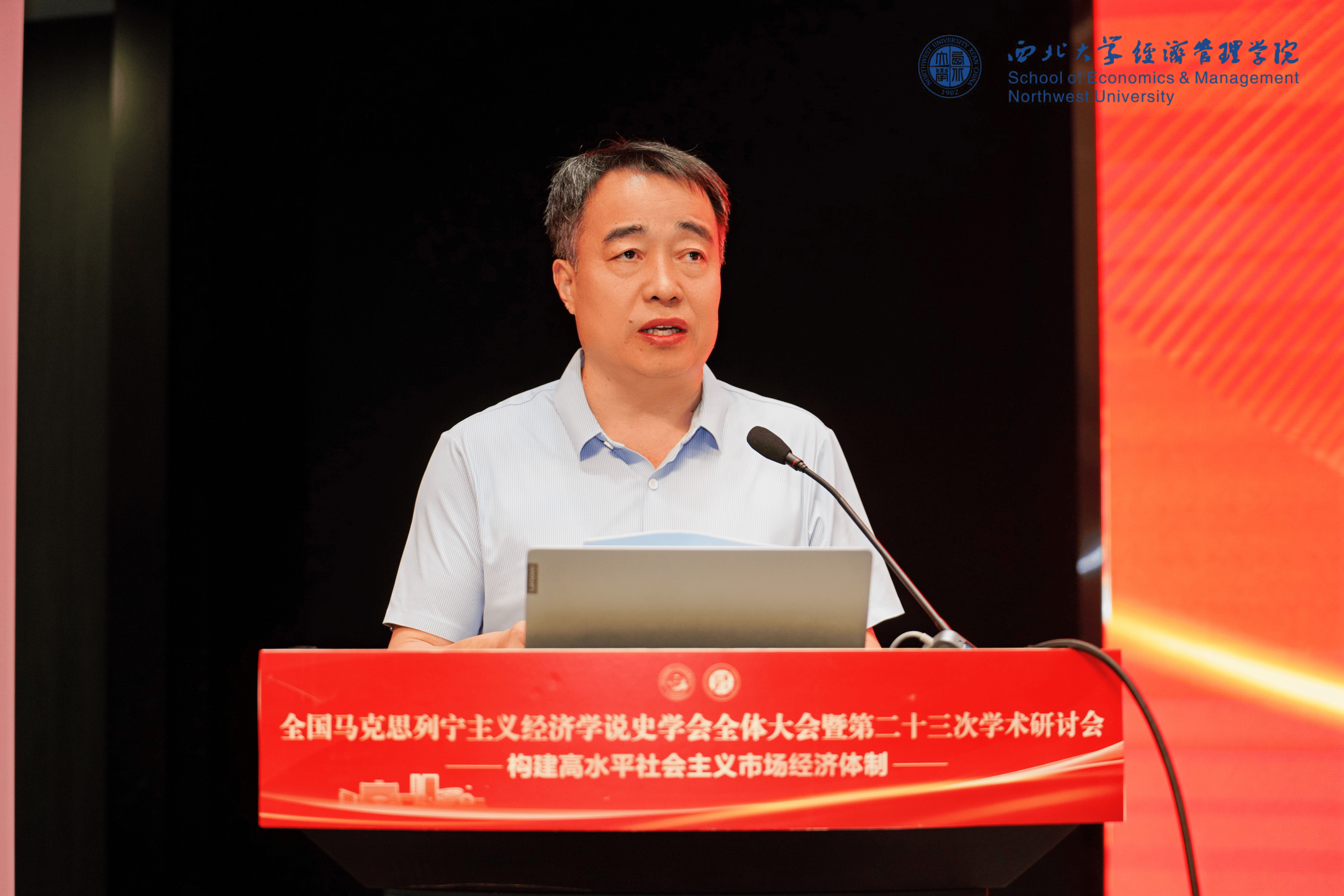 5月24-25日,全国马克思列宁主义经济学说史学会全体大会暨第二十三次学术研讨会在西北大学长安校区召开,本次研讨会由全国马克思列宁主义经济学说史学会主办,西北大学经济管理学院、中国西部经济发展研究院、西北大学中国特色社会主义政治经济学研究中心联合承办。西北大学党委常委、副校长李振海,全国马克思列宁主义经济学说史学会副会长、秘书长张旭教授出席会议并致辞;来自全国40余所高校和科研机构的专家、学生共100余人参会,经济管理学院院长马莉莉主持开幕式。