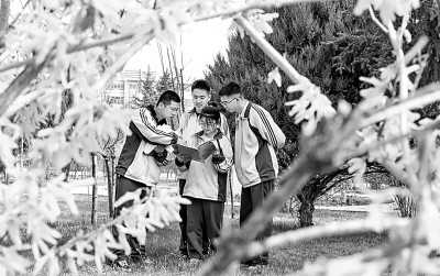 甘肃省张掖市第二中学,高三学生在宁静的校园中讨论功课。王将摄/光明图片
