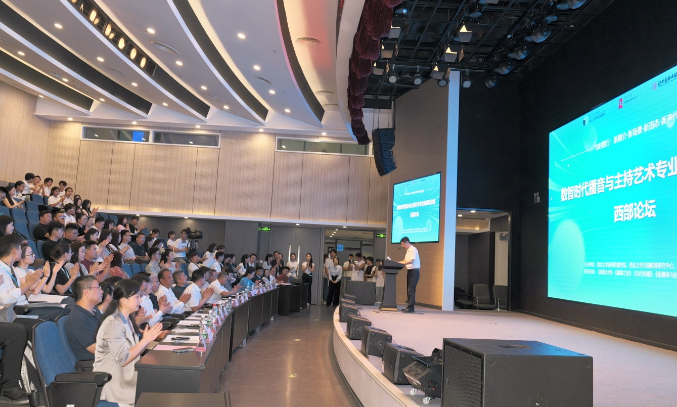 6月22日,首届“数智时代播音与主持艺术专业高质量发展西部论坛”在西北大学长安校区举行。本次论坛由西北大学新闻传播学院、西北大学齐越教育研究中心与陕西省朗诵协会共同举办。论坛立足“新媒介·新场景·新语态·新声代”,围绕多个议题探讨数智时代播音主持学科的发展未来。论坛共收到投稿百余篇,吸引了来自全国近50所高校的师生、多位知名学者专家及业界人士与会。