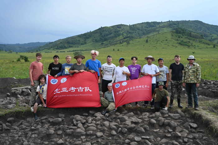 西北大学丝绸之路考古合作研究中心与俄罗斯阿尔泰国立大学联合考古队合影。受访者供图