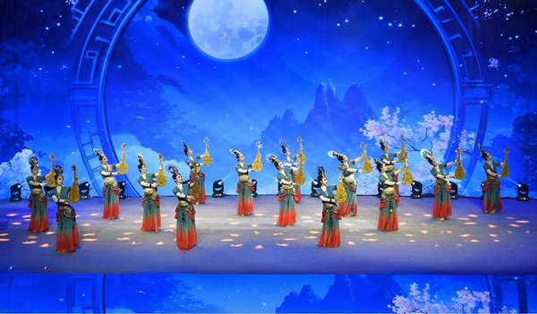 A dance performance inspired by the poem The Moon over the River on a Spring Night by Tang Dynasty (618-907) poet Zhang Ruoxu is featured at the opening ceremony of the 2025 International Youth Poetry Festival—Special Session for China-Latin American Countries, in Xi’an, Shaanxi province, on Sept 15, 2025. [Photo by Xue Bo/provided to chinadaily.com.cn]