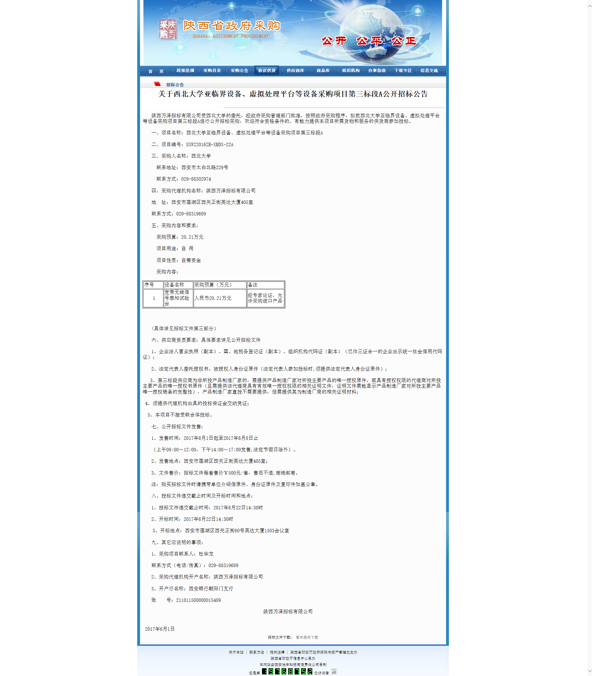 关于西北大学亚临界设备、虚拟处理平台等设备采购项目第三标段A公开招标公告 作者: 编辑: 时间:2017-06-02 08:20 http://www.ccgp-shaanxi.gov.cn/zbxxs.jsp?NewsID=ZB170601090022US101028111214&ClassBID=C0001