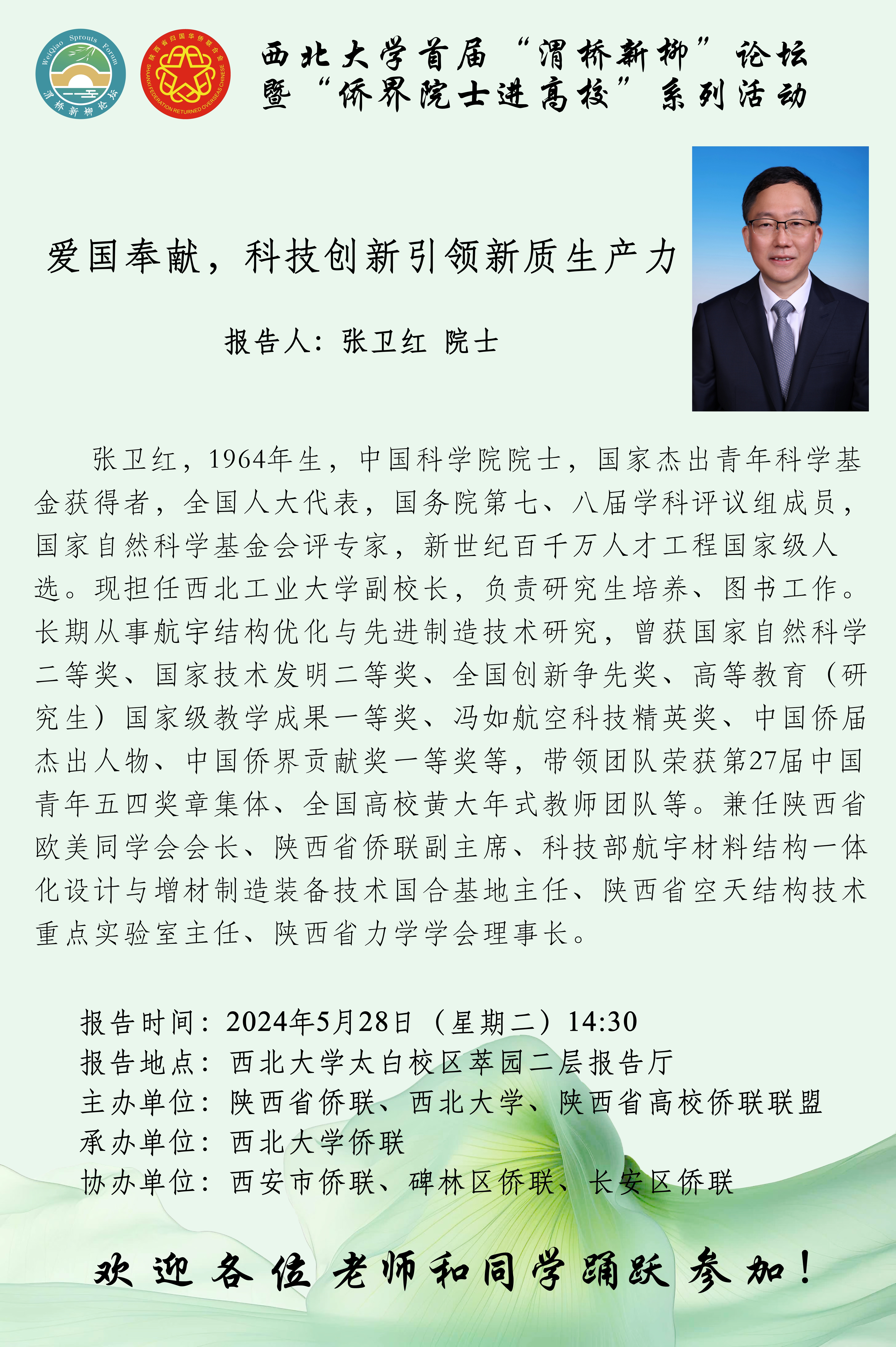 西北大学首届“渭桥新柳”论坛暨“侨界院士进高校”系列活动——爱国奉献,科技创新引领新质生产力