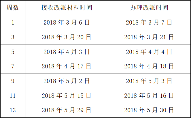 按照省教育厅关于毕业生改派有关工作的要求,现将我校本学期办理改派的相关事宜安排如下。申请办理改派的毕业生需于每教学周单周周二向学生就业创业指导服务中心递交纸质版材料,学生就业创业指导服务中心次日到省教育厅办理改派手续。