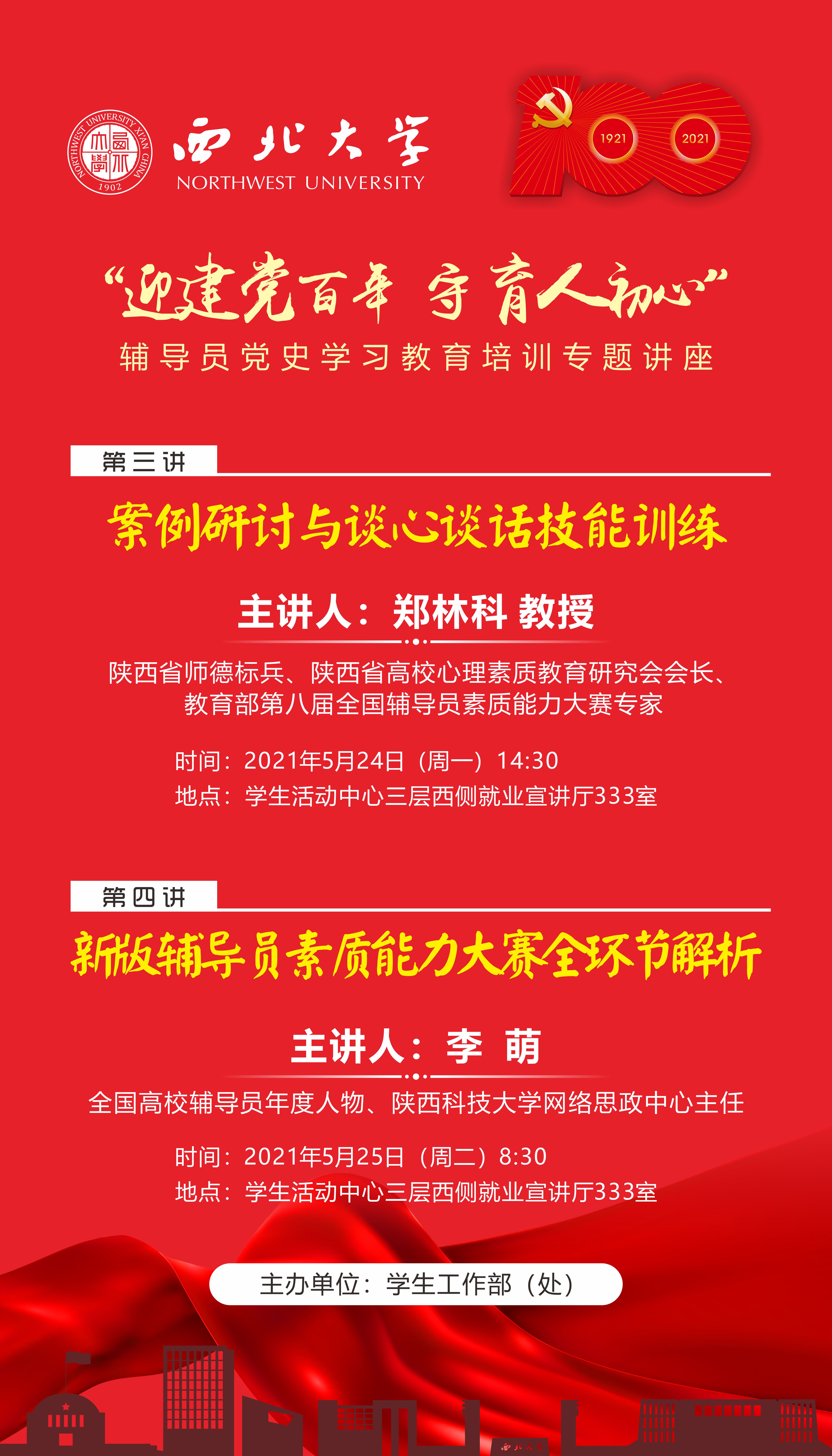 讲座预告:“迎建党百年 守育人初心”辅导员党史学习教育培训系列讲座