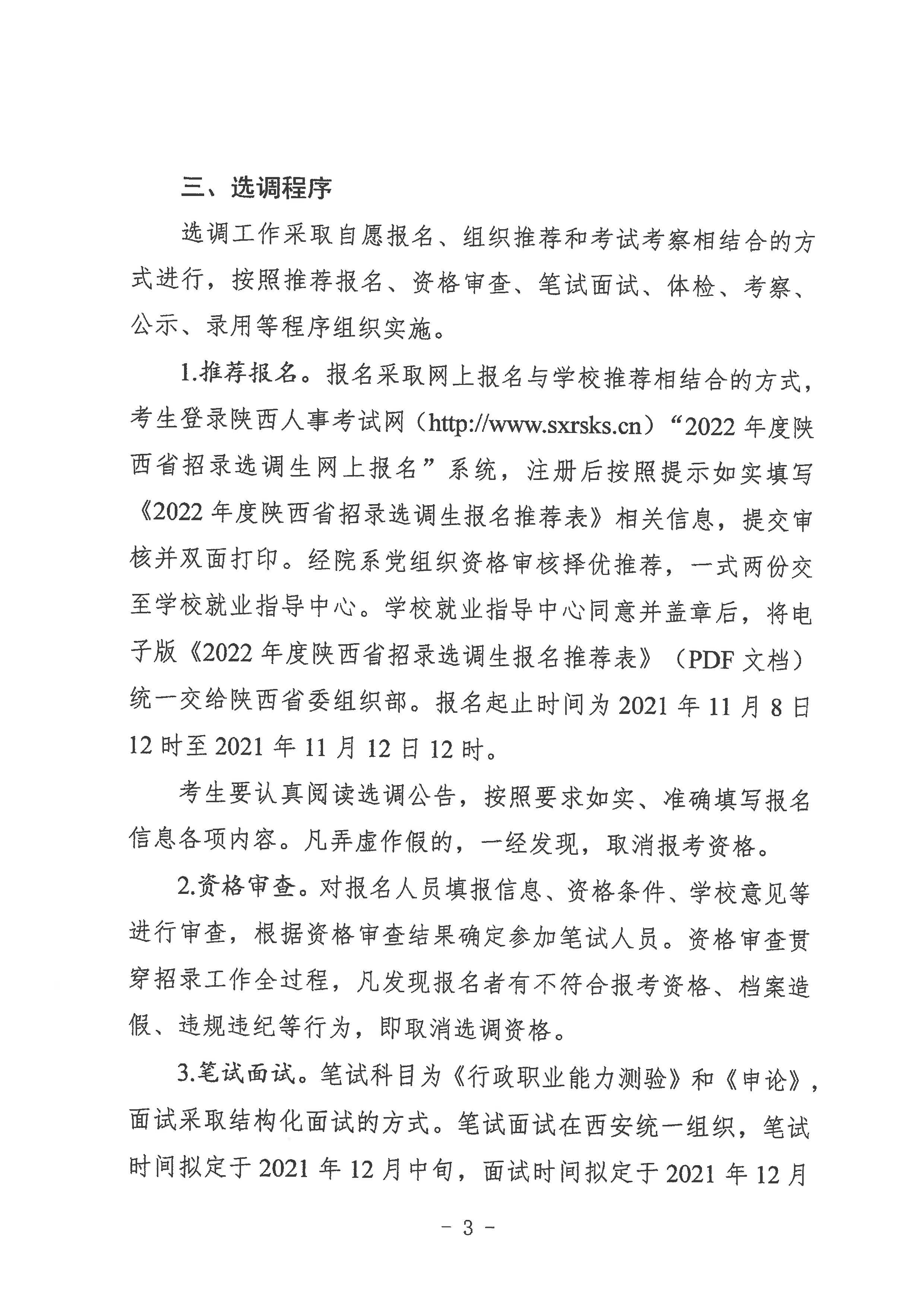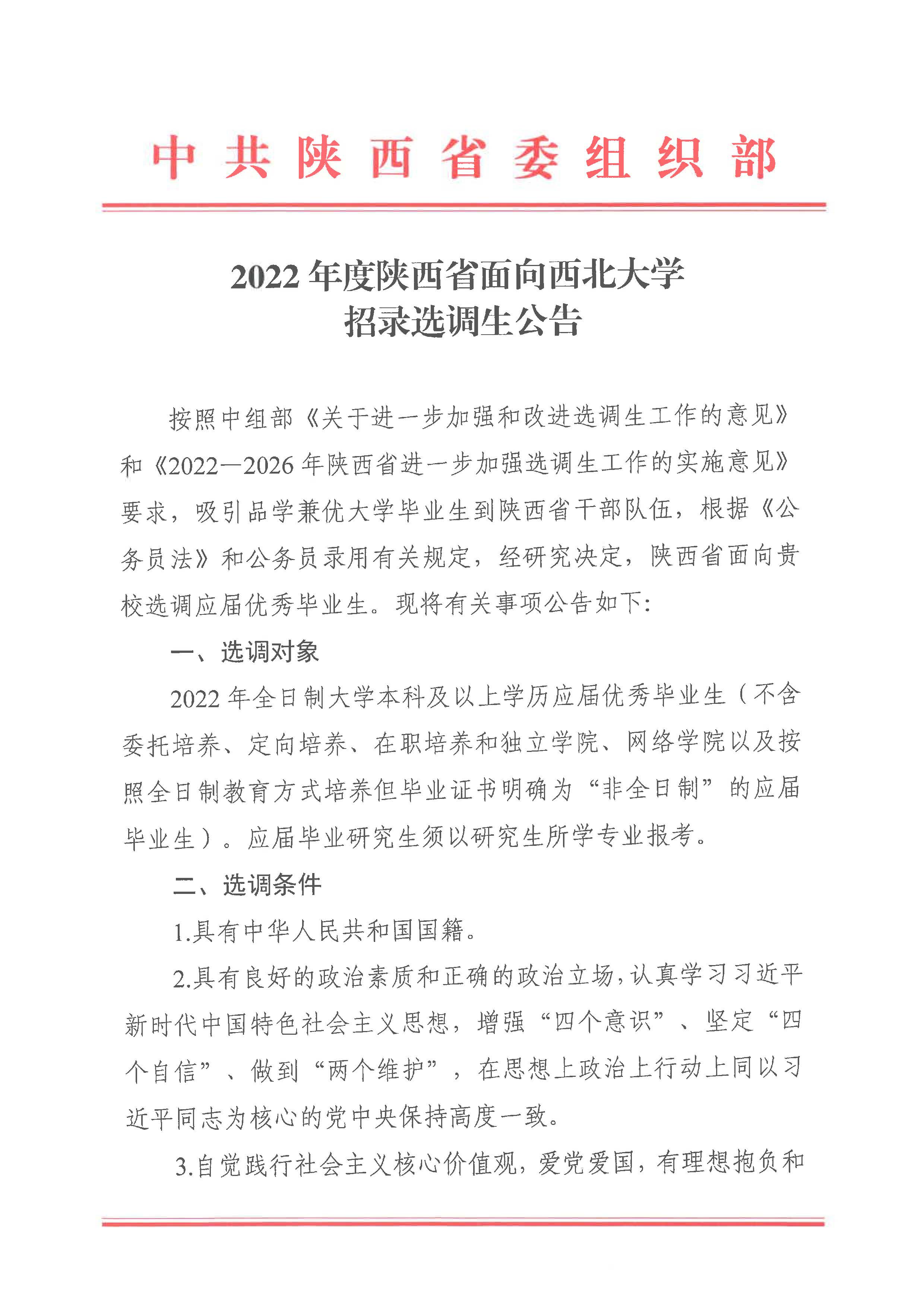 2022年度陕西省面向西北大学招录选调生公告